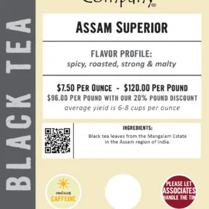 Loose Leaf Black Tea Available by the Whole Ounce or Pound.