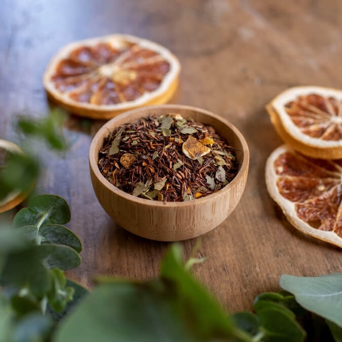 You can most certainly Breathe Easy with this rooibos member of the Fava Tea Company Wellness Collection! Eucalyptus has long been used in the wide-open spaces of Australia for its soothing and flavorful brew, which is combined perfectly here with juicy citrus. Not just for cuddly koalas, this organic blend is certain to help clear up your system and have you congestion-free in no time!