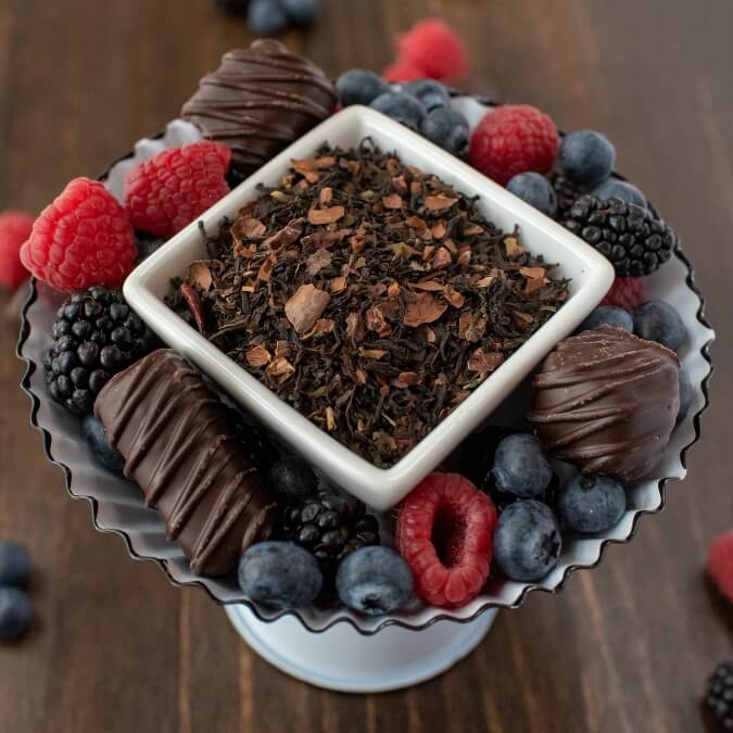 Back by popular demand, our Chocolate Berry Trifle is perfect for sharing with loved ones! Blended with a light black tea base, it has a toasty, warm body with a hint of milk chocolate and a bright berry flavor. The result is a delicious brew that is sure to remind you of fresh fruit dipped in a rich chocolate fondue!