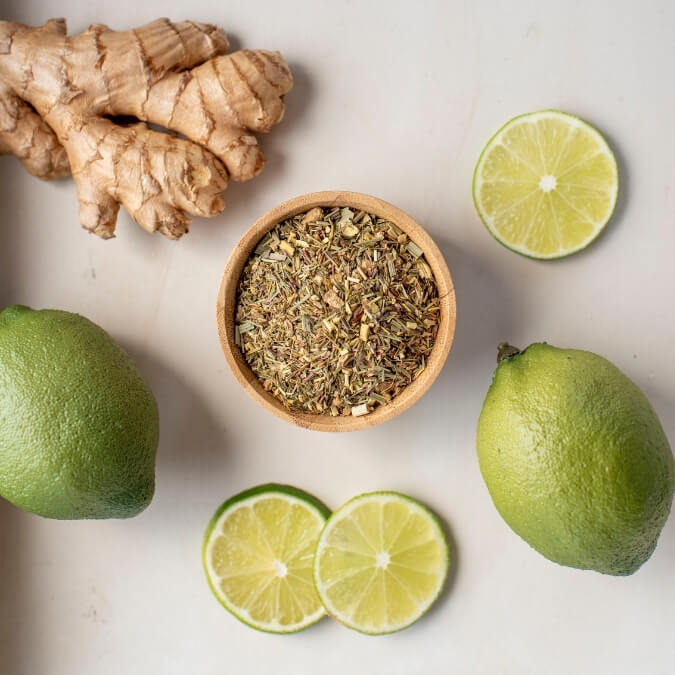 Delicious organic green rooibos meets an earthy, citrus flavor in this tangy blend! Organic ginger adds a little spice, licorice root sweetens things up, and natural essential oils of lime and tangerine round out a flavor profile that is excellent hot or iced. Rooibos teas are popular for their health benefits, including anti-inflammatory and digestive properties, and ingredients like ginger and licorice root boost the immune system, resulting in a flavorful and healthy caffeine-free tea!