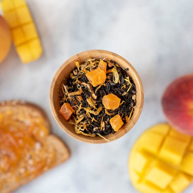 Reblended in August of 2022, our new Peach Mango combines the freshness of a sweet peach with the tropical flavors of mango. A medium body black tea provides a foundation that perfectly complements the bright and fruity flavor, resulting in a refreshing brew that’s fantastic hot or cold!