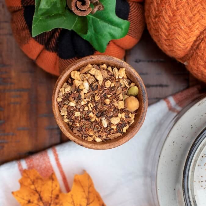 The aroma of our Pumpkin Harvest Rooibos is one you’ll warm up to instantly! Sweet, creamy, and spicy, this caffeine-free tea is the perfect complement to your daily routine from start to finish. With spicy nutmeg and ginger followed by hints of vanilla and pumpkin, we’re sure you’ll want to kick off the pumpkin season right with this blend!