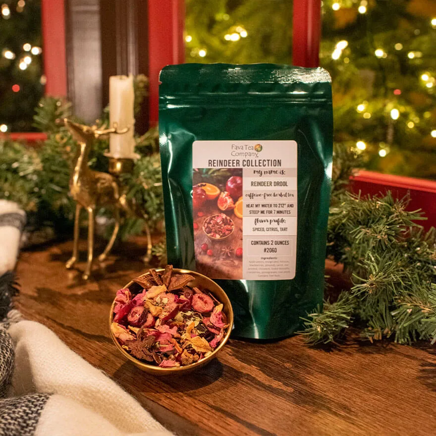 Limited Edition Loose Leaf Herbal Tea available in 2-ounce packages. Want to try a smaller sample? Try the Reindeer Drool Teaser Package!