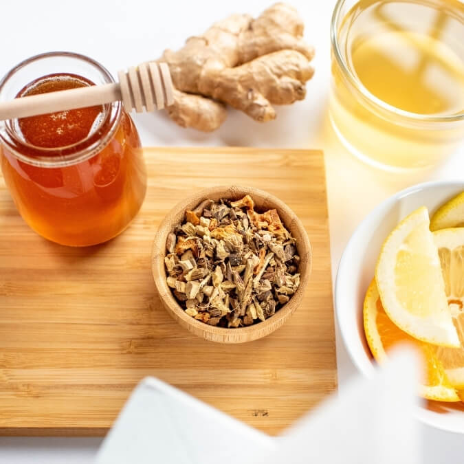 Re-blended in early 2022, Sore Throat Soother is sure to extinguish a fiery sore throat and have you up and chatting in no time. We start with organic licorice and ginger root, adaptogenic herbs that help to reduce stress in your body and return it to its natural state. After mixing in a bit of cinnamon and orange peel, it’s sure to have you feeling better before you know it! Want it sweetened? A bit of honey pairs perfectly with this blend!